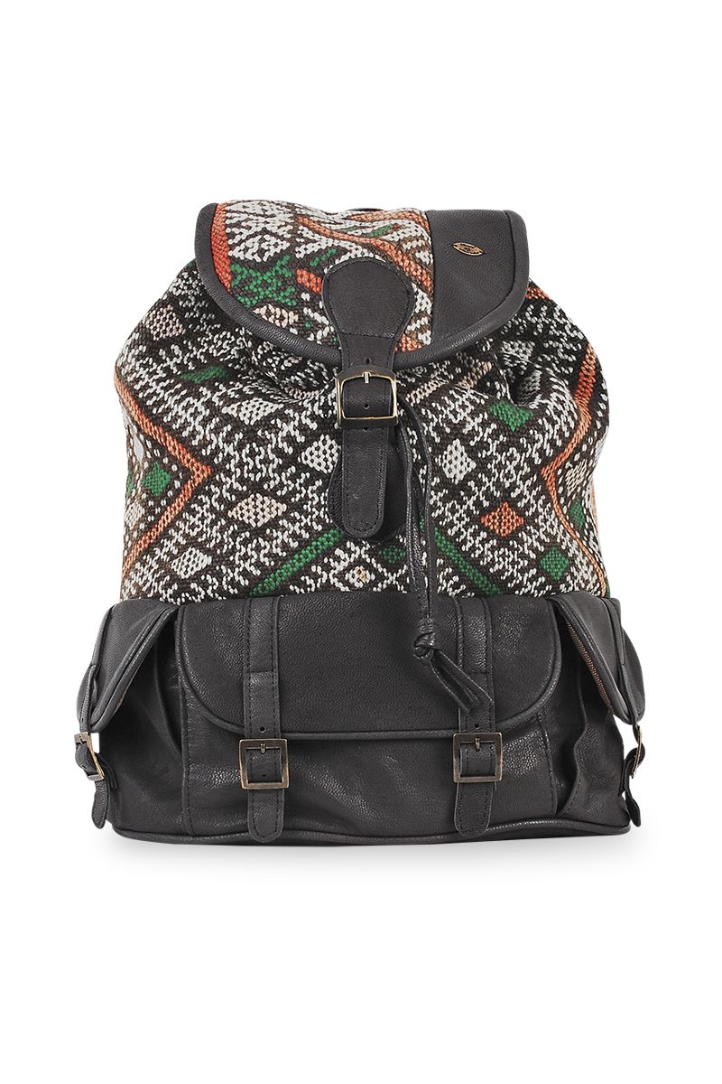 Each Kiboots leather backpack is handmade and combines our genuine premium leather with authentic handwoven kilim rugs. This travel backpack has two side pockets and one front pocket.