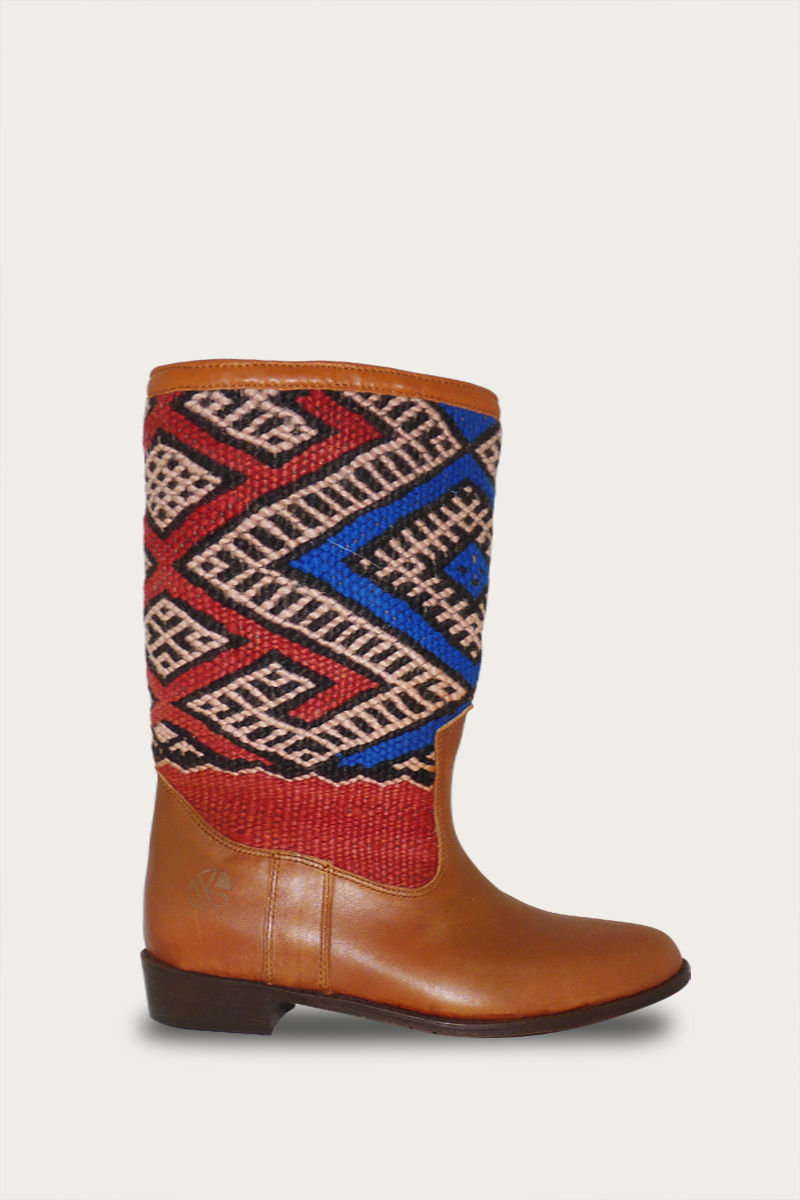 Our gorgeous handcrafted Lee Ann boots are made from repurposed original Kilim rugs and quality artisan leather. Our versatile flat heel ankle boots add a casual chic flare to any outfit from skinny jeans to skirts.