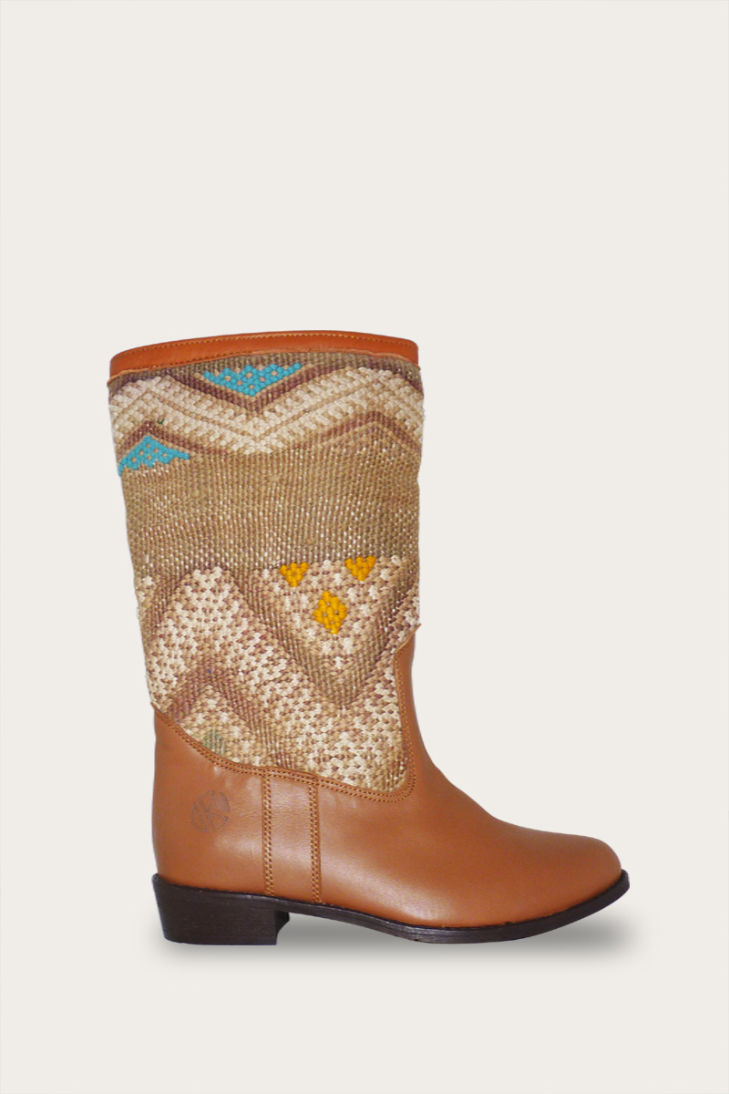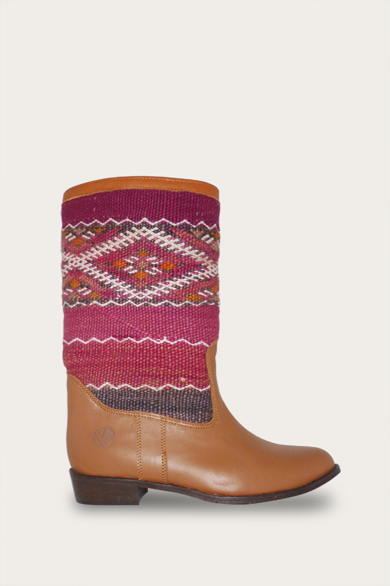 Our gorgeous handcrafted Lee Ann boots are made from repurposed original Kilim rugs and quality artisan leather. Our versatile flat heel ankle boots add a casual chic flare to any outfit from skinny jeans to skirts.