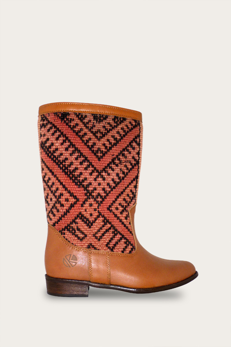 Our gorgeous handcrafted Lee Ann boots are made from repurposed original Kilim rugs and quality artisan leather. Our versatile flat heel ankle boots add a casual chic flare to any outfit from skinny jeans to skirts.