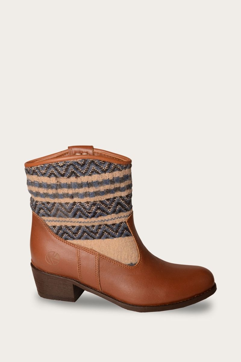 Such a cool lady! Our Inez ankle boots are the most feminine and elegant style in our line of leather footwear. Crafted from original vintage Kilim rugs and premium leather, the Inez version of our Kilim boots boasts a slight heel and sleek curves. They come in a variety of colorful patterns that radiate character.