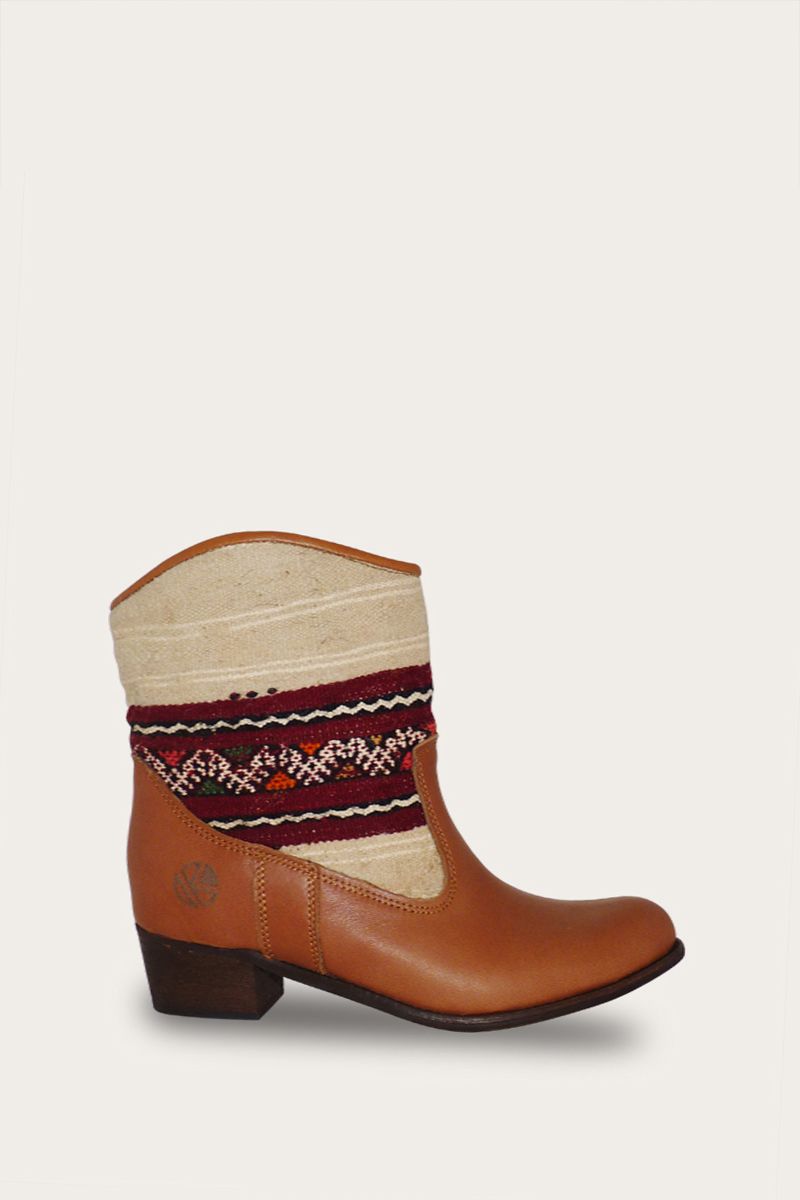 Such a cool lady! Our Inez ankle boots are the most feminine and elegant style in our line of leather footwear. Crafted from original vintage Kilim rugs and premium leather, the Inez version of our Kilim boots boasts a slight heel and sleek curves. They come in a variety of colorful patterns that radiate character.