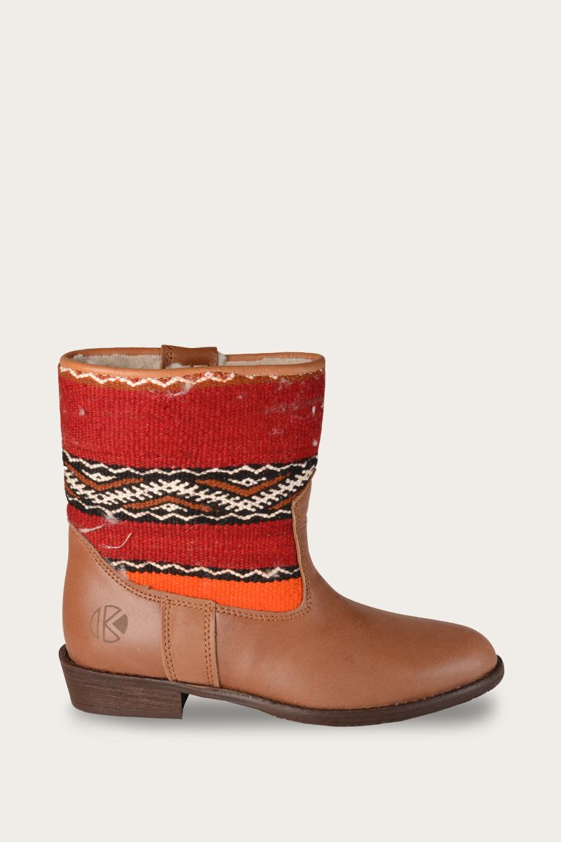 What makes our boots special is that the shaft is made from “upcycled” kilim carpets. Carefully selected for size and color from Morocco and Turkey, among others. This makes every pair of boots in our collection “one-of-a-kind”