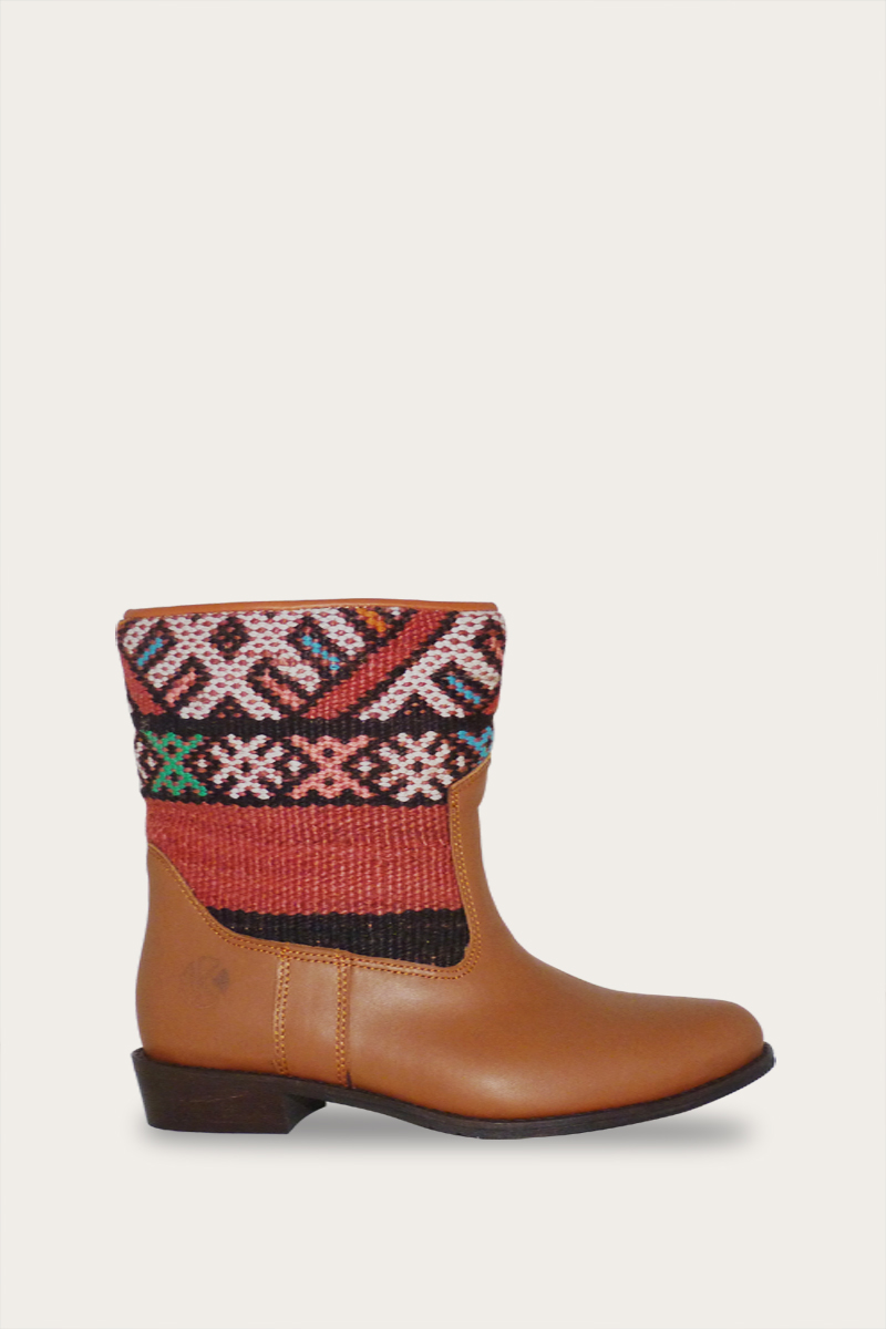 Our boots are handmade from the finest natural leather and authentic vintage Kilim