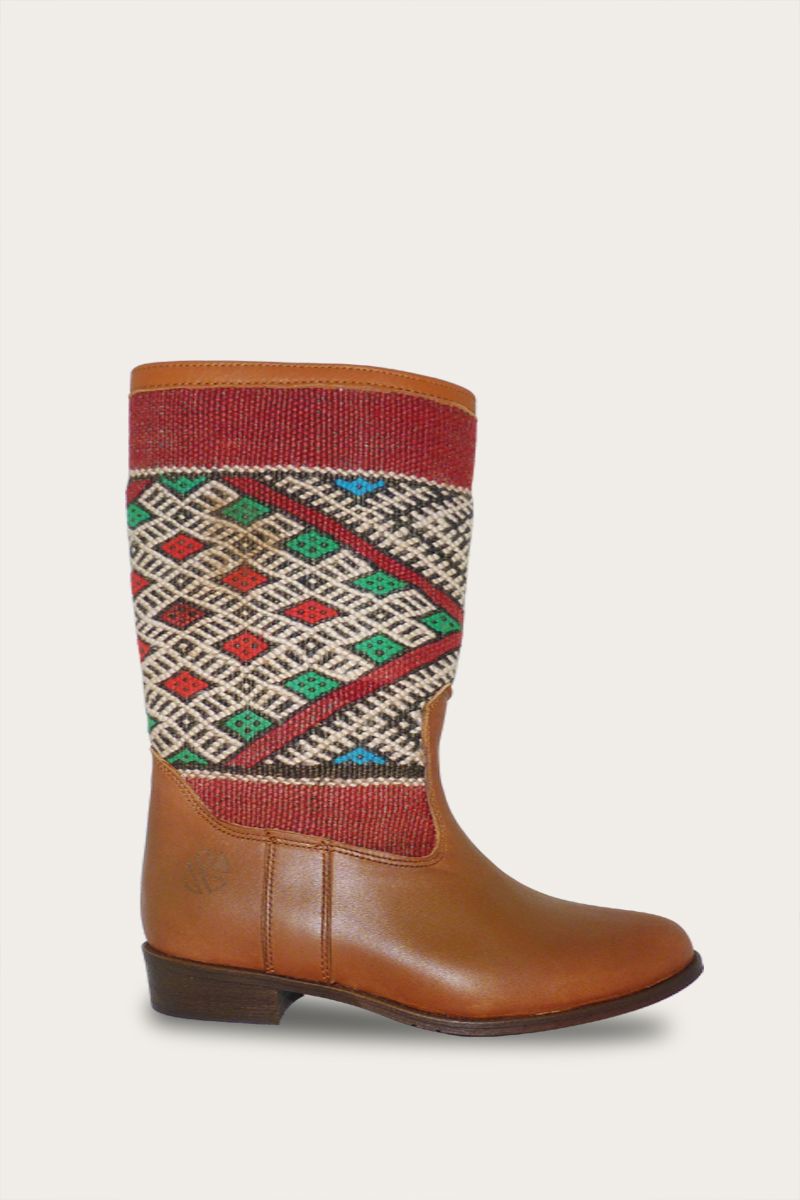 Die wunderschönen Stiefel Lee Ann wirken, als seien sie direkt einem Märchen aus Tausendundeiner Nacht entsprungen. Dieses Kelimstiefel-Modell ist inspiriert durch unsere Reisen und besonderen Begegnungen. Farbenfrohe und authentische Motive sorgen für einen coolen Look. Die marokkanischen Kelimstiefel werden von einheimischen Handwerksleuten aus authentischen Kelim-Teppichen in Kombination mit Qualitätsleder hergestellt. Diese Damenstiefel im Ibiza-Stil sind die perfekte Ergänzung zum Boho-Rock oder zur Jeans.