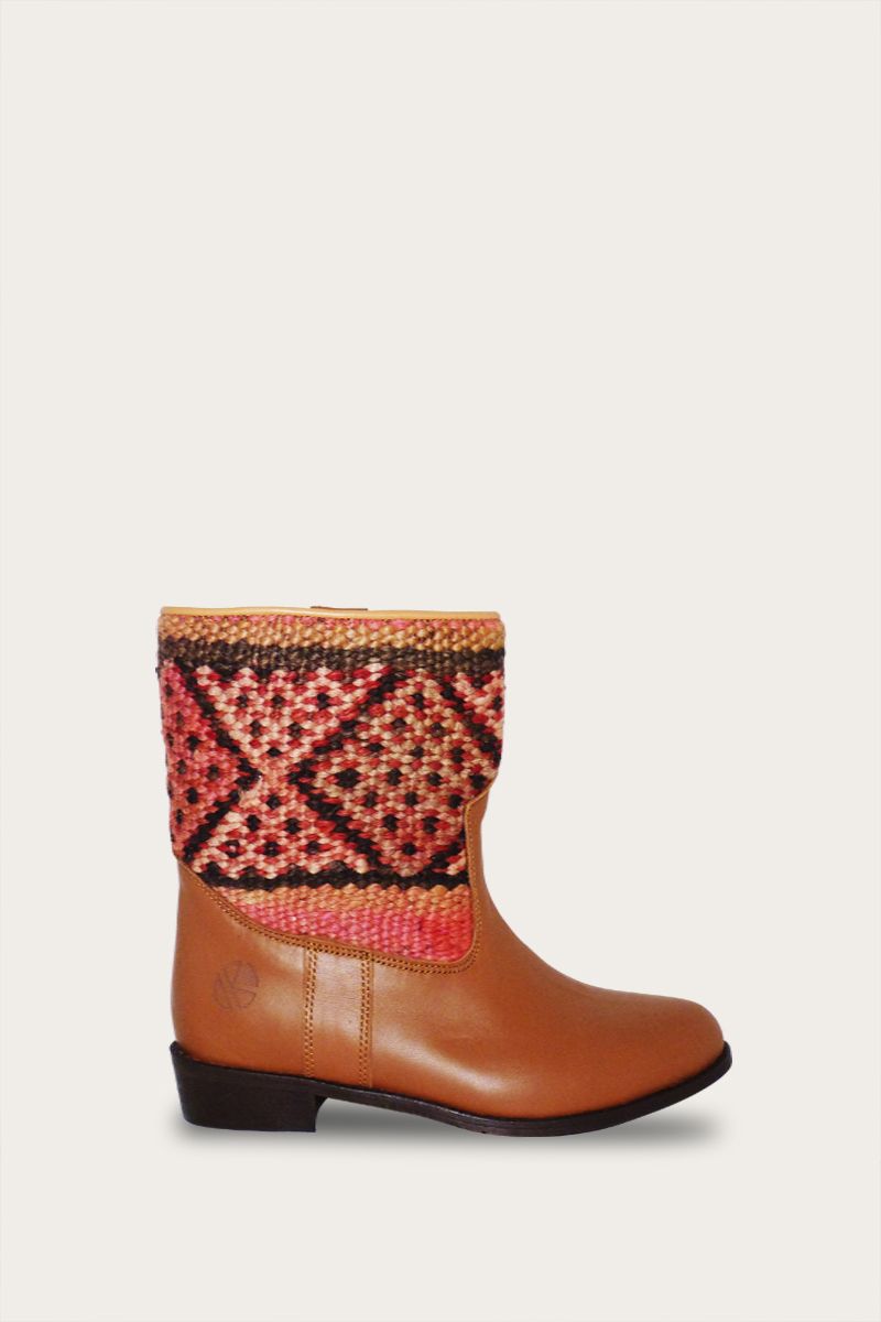 What makes our boots so special is that the shaft is made from “upcycled” kilim carpets. Carefully selected for size and color from Morocco and Turkey, among others. This makes every pair of boots in our collection “one-of-a-kind”