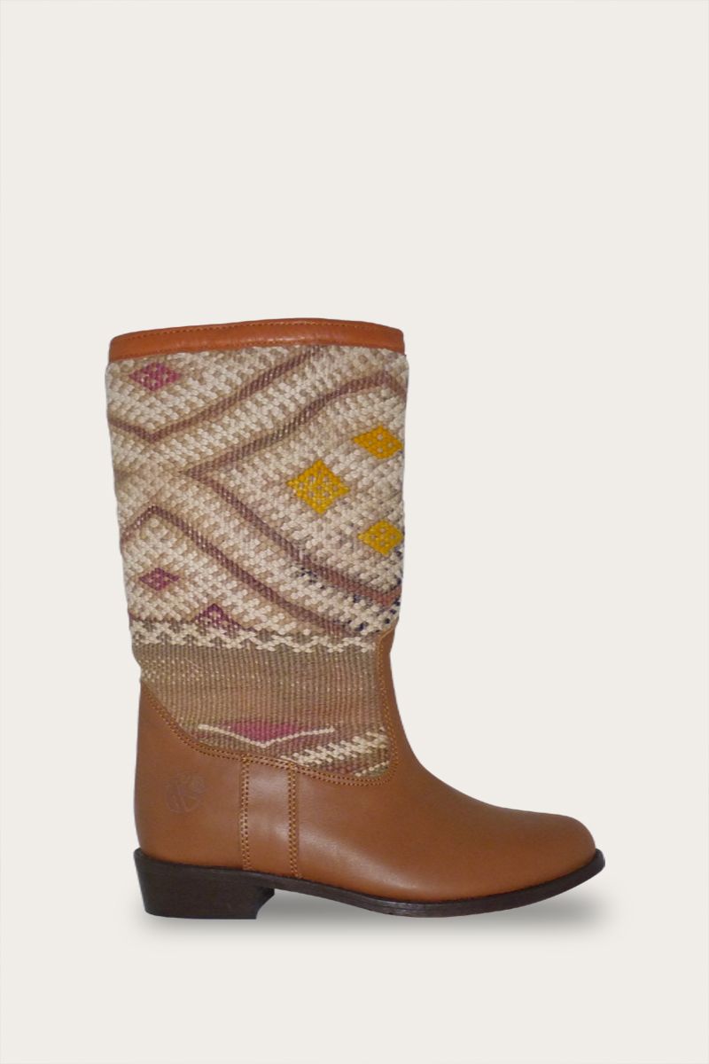 Handmade kilim and leather boots for women. A combination of original vintage kilim rugs and premium leather.