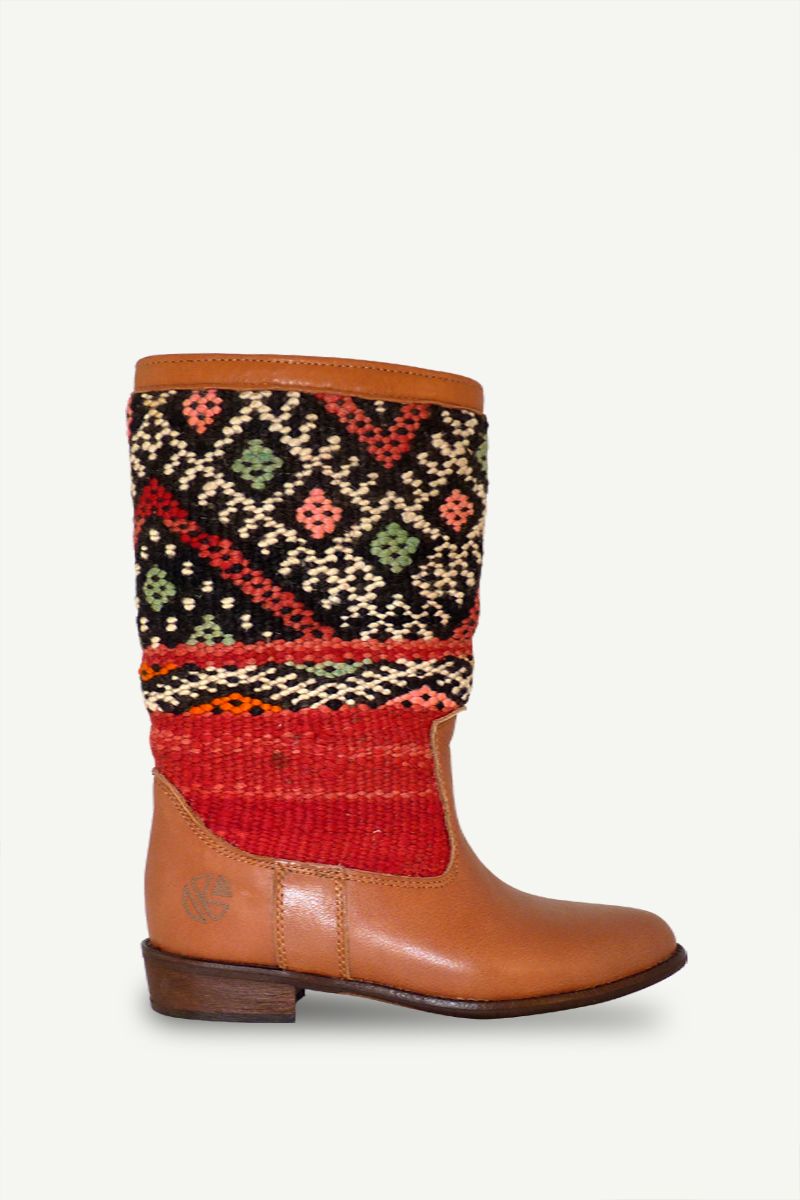 Handmade kilim and leather boots for women. A combination of original vintage kilim rugs and premium leather.