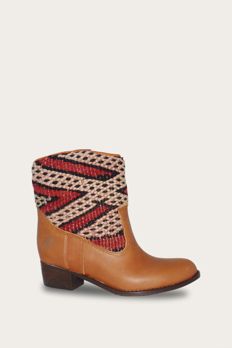 Vrouwelijk en kleurrijk, gemaakt van het beste leer en vintage Kelim tapijten.