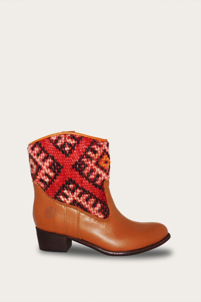 Mag ik je voorstellen aan Inez? Onze Inez enkellaars is vrouwelijk en kleurrijk, gemaakt van het beste leer en originele vintage Kelim tapijten. Met de middelhoge hak en slanke schacht zijn de boho Ibiza laarzen een bijzondere toevoeging aan je schoenencollectie. De kleurige dameslaarsjes toveren een glimlach op ieders gezicht, ze zijn one-of-a-kind en dragen de Kindred Spirit in zich. De Kindred laarzen zijn verkrijgbaar in een breed scala aan kleuren en patronen