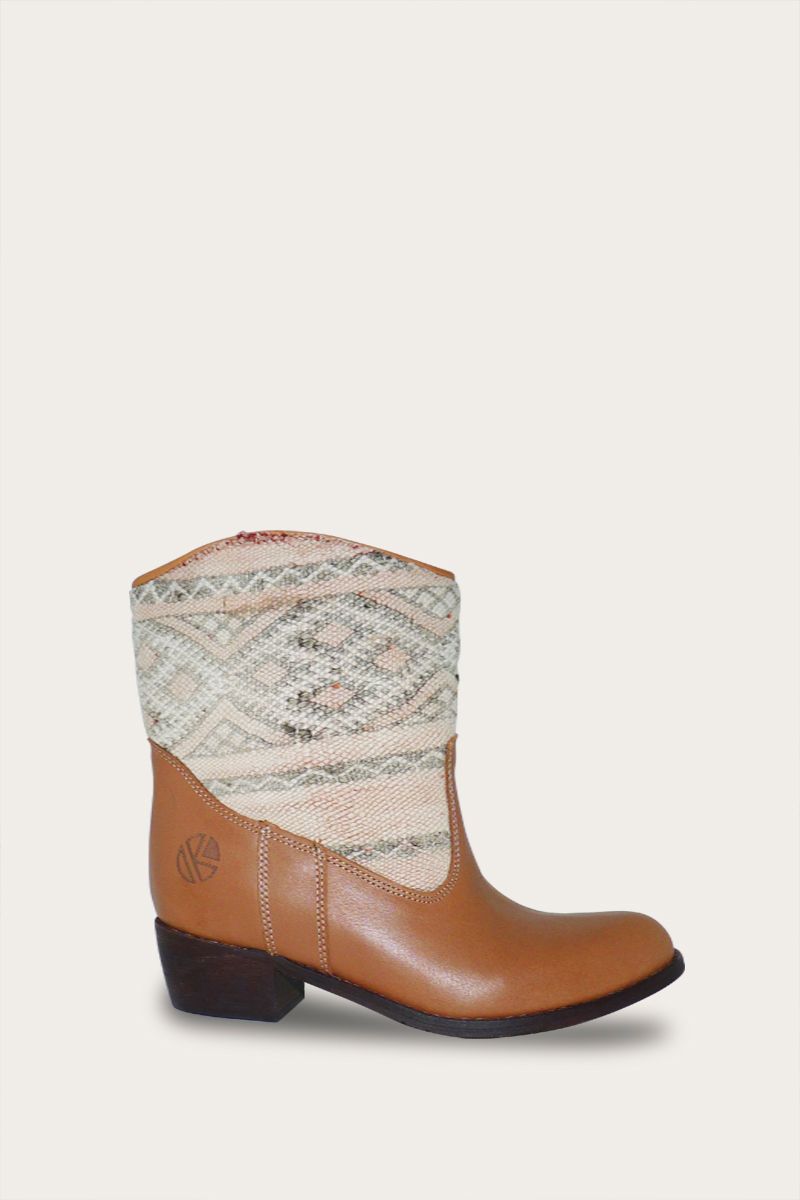 Onze Inez enkellaarzen zijn kleurrijk en elegant en passen bij iedere boho vrouw. Het kwalitatieve leer, de originele vintage Kelim tapijt gebruikt voor onze tijdloze dameslaarzen Ibiza stijl straalt symboliek en warme vriendschappen in verre landen uit. De Kiboots Kelim laarzen zijn er in verschillende kleurrijke patronen en ieder dameslaarsje heeft haar eigen Kindred Spirit identiteit.