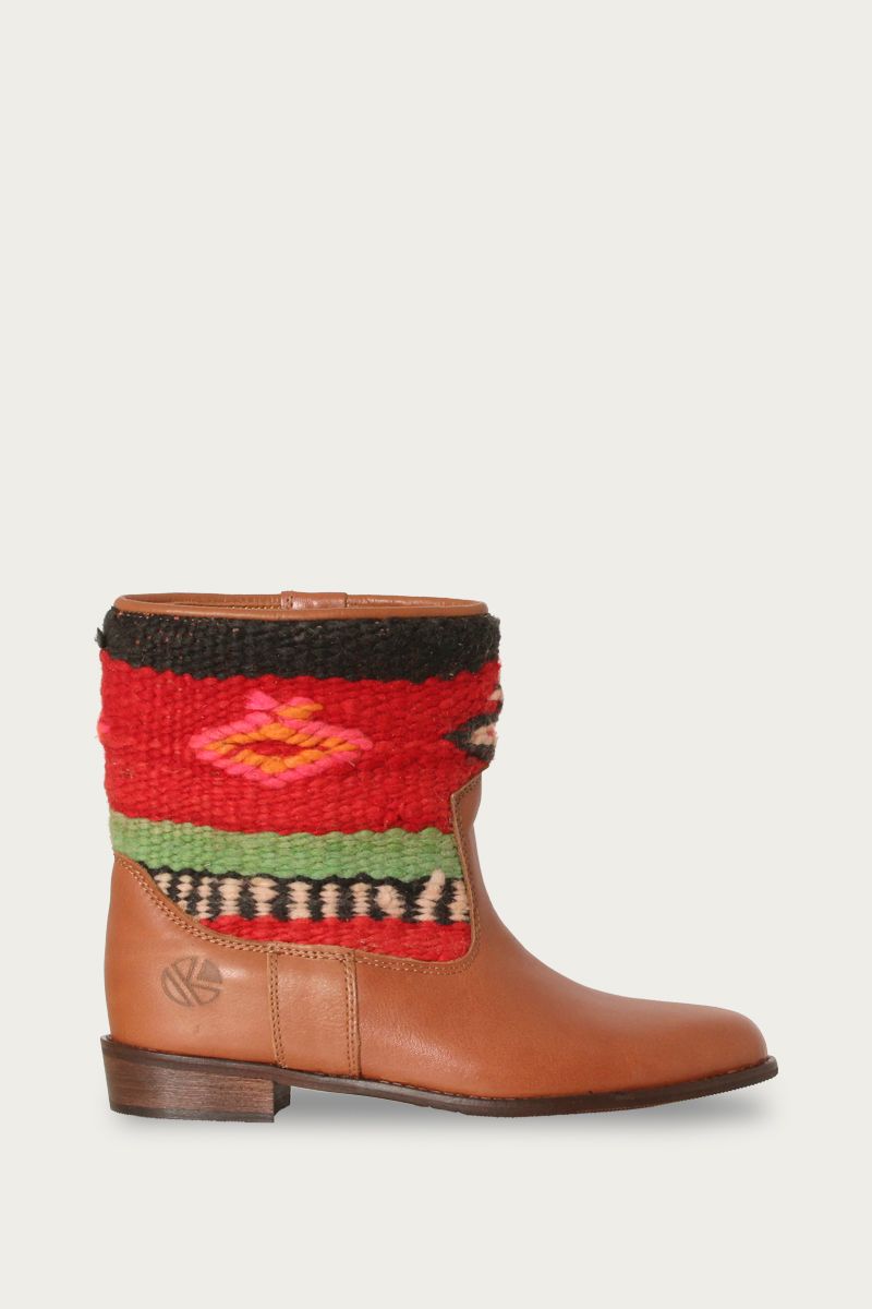 Wat onze laarzen zo speciaal maakt, is dat de schacht is gemaakt van “upcycled” kelim tapijten. Zorgvuldig geselecteerd op maat en kleur uit o.a Marokko en Turkije. Dit maakt elk paar laarzen in onze collectie “one-of-a-kind”