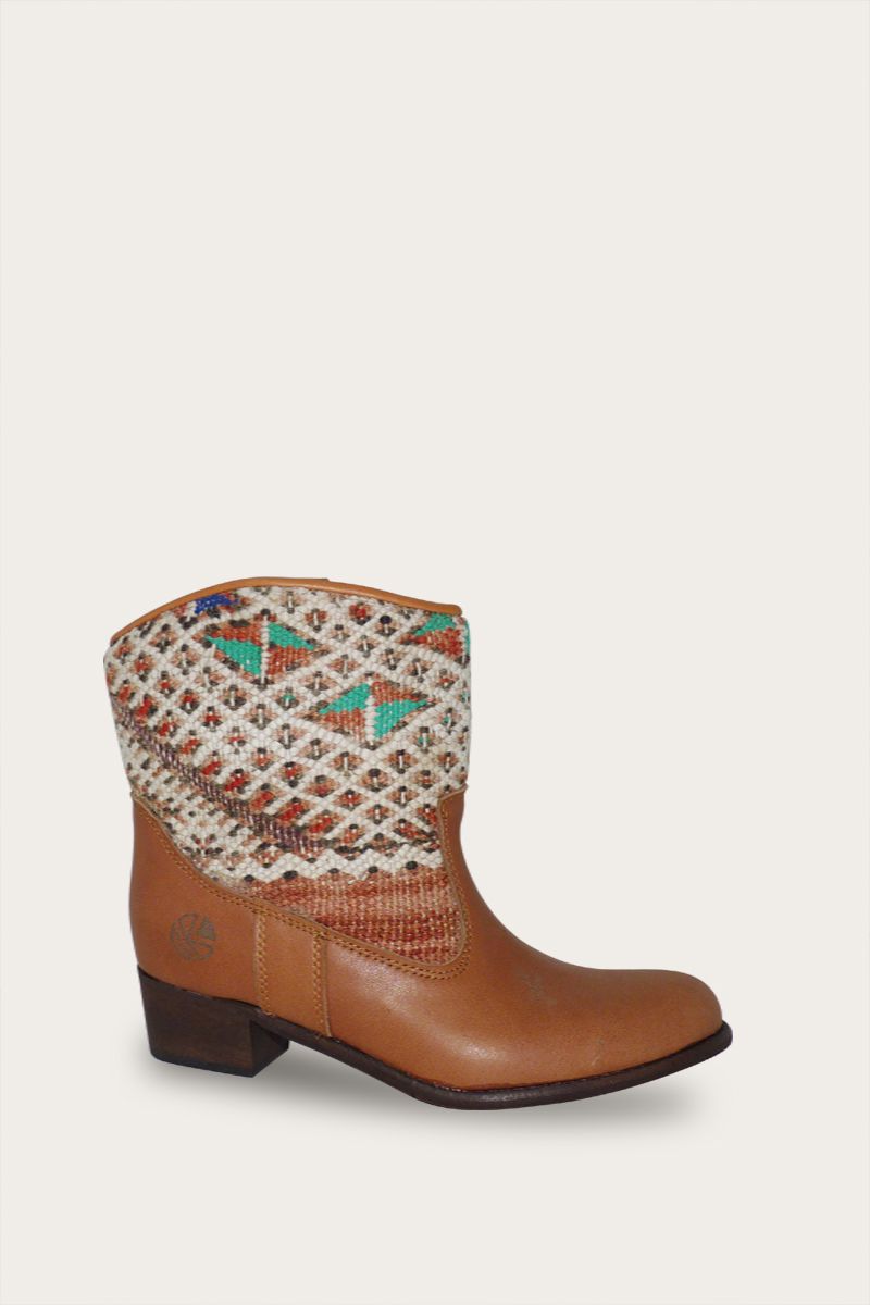 Such a cool lady! Our Inez ankle boots are the most feminine and elegant style in our line of leather footwear. Crafted from original vintage Kilim rugs and premium leather, the Inez version of our Kilim boots boasts a slight heel and sleek curves. They come in a variety of colorful patterns that radiate character.