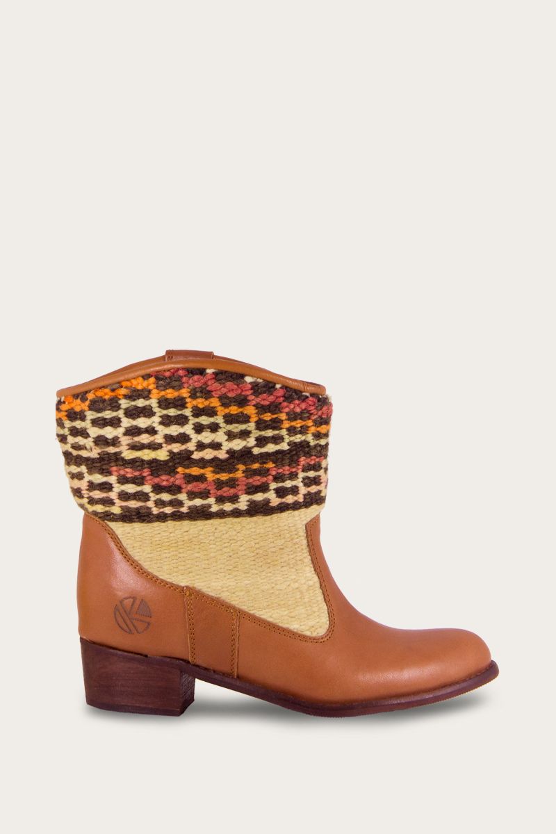 Such a cool lady! Our Inez ankle boots are the most feminine and elegant style in our line of leather footwear. Crafted from original vintage Kilim rugs and premium leather, the Inez version of our Kilim boots boasts a slight heel and sleek curves. They come in a variety of colorful patterns that radiate character.